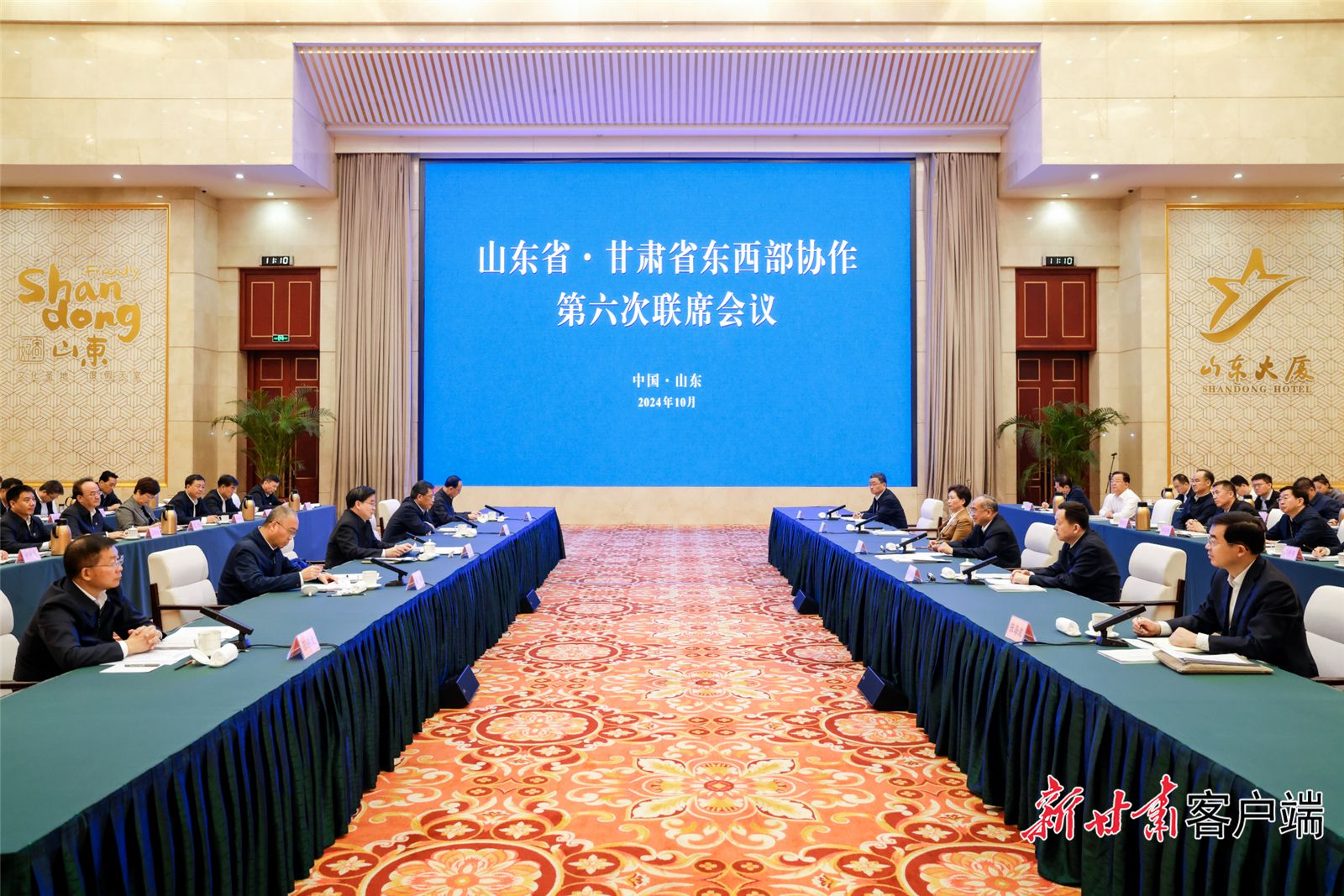 胡昌升代表省委、省政府和全省人民對山東省給予甘肅發展的無私援助和大力支持表示衷心感謝。他說,近年來,山東深入貫徹落實習近平總書記視察山東重要講話精神,堅決扛牢“走在前、挑大梁”的使命擔當,推動高質量發展不斷邁出新步伐。山東堅定不移落實黨中央、國務院關于東西部協作的決策部署,對甘財政援助持續加大,企業投資和產業合作深入推進,群眾就業增收成效明顯,干部人才交流日益密切。下一步,我們將深入學習貫徹習近平總書記視察甘肅重要講話重要指示精神,主動服務和對接區域協調發展戰略,同心協力、同題共答,共同繪就甘魯協作新篇章。持續推進新能源產業合作,加快“隴電入魯”工程項目建設,促進甘肅新能源及新能源裝備制造基地發展;持續推進現代農業合作,深化玉米和馬鈴薯制種、鹽堿地開發利用以及智慧農業、設施農業等領域交流,提升甘肅現代寒旱特色農業發展水平;持續推進產業轉移合作,扎實開展“魯企走進協作地·甘肅行”活動,落地實施一批標志性、引領性項目;持續推進文旅發展合作,加強文旅資源聯合開發,不斷完善品牌文旅企業和管理公司跨省經營、旅游文創產品開發推廣等機制;持續推進生態治理合作,攜手加強黃河流域生態保護和高質量發展,為守護黃河安瀾、建設美麗中國作出新貢獻。