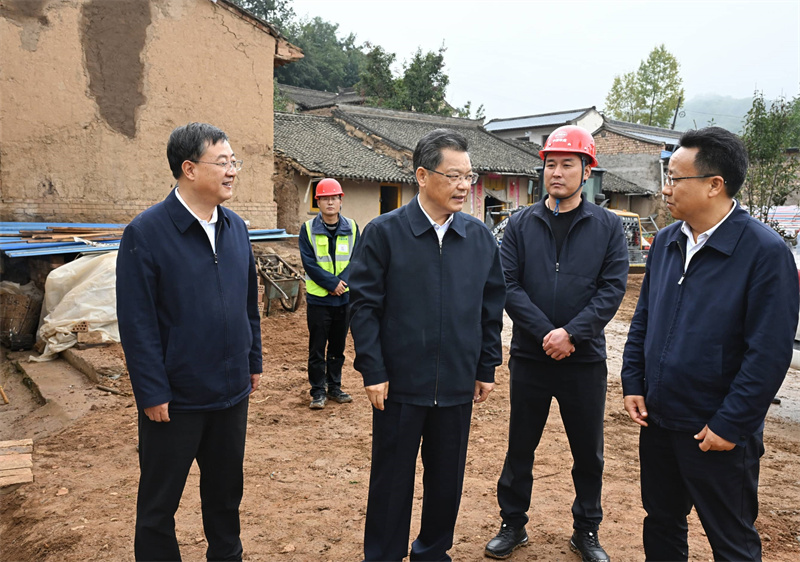 10月4日,省委副書記、省長任振鶴在漳縣調研地震受災和群眾基本生活保障情況,并主持召開隴西5.6級地震災后恢復重建現場辦公會。(記者盛學卿)