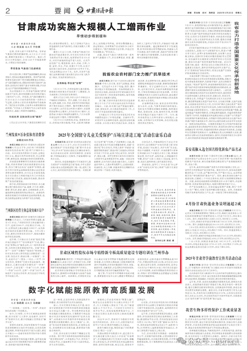 甘肅區(qū)域性股權(quán)市場(chǎng)專(zhuān)精特新專(zhuān)板高質(zhì)量建設(shè)專(zhuān)題培訓(xùn)在蘭州舉辦
