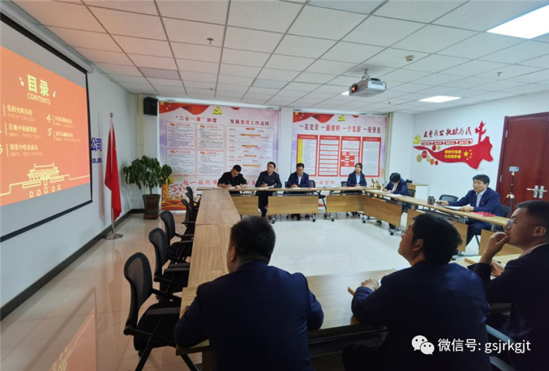 近日,金控定西擔(dān)保開展“百年紅色光影,奮進嶄新征程——熱烈慶祝中國共產(chǎn)黨建黨100周年”黨史教育專題黨課學(xué)習(xí)。黨委書記石培龍同志傳達集團相關(guān)文件精神,并講授《熱烈慶祝中國共產(chǎn)黨建黨100周年》主題黨課。會議強調(diào),全體黨員干部要切實提高政治站位,深刻認識開展黨史學(xué)習(xí)教育重要性,做到學(xué)史明理、學(xué)史增信、學(xué)史崇德、學(xué)史力行,以高度的責(zé)任感和使命感認真做好工作,立足本職,強化責(zé)任擔(dān)當(dāng),切實把學(xué)習(xí)成果轉(zhuǎn)化為加快推動工作落實的實干擔(dān)當(dāng)。
