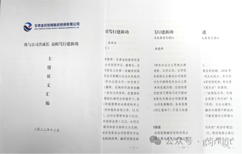 三、印制一本社會責任報告報告分為金控張掖擔保發展篇、政治建設篇、內控管理篇、服務企業篇、風險管理篇、團隊建設篇、社會責任篇及展望八個篇章,提煉了五年來公司改革發展、經營管理、服務實體經濟等方面的亮點做法。通過印制社會責任報告,進一步拓寬了對外宣傳媒介載體,展現了公司服務地方經濟發展的做法成效,起到了較好地宣傳作用。