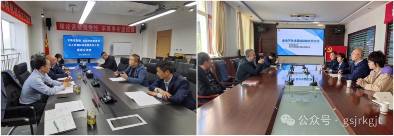 會后,由省委金融辦、甘肅證監局、北交所西北基地、甘肅股權交易中心組成的聯合調研組深入蘭州大成鐵路信號股份有限公司、云上甘肅科技有限責任公司等多家上市后備企業實地走訪,與企業一對一交流,了解企業發展及上市進展情況,指導企業做好上市掛牌相關工作。